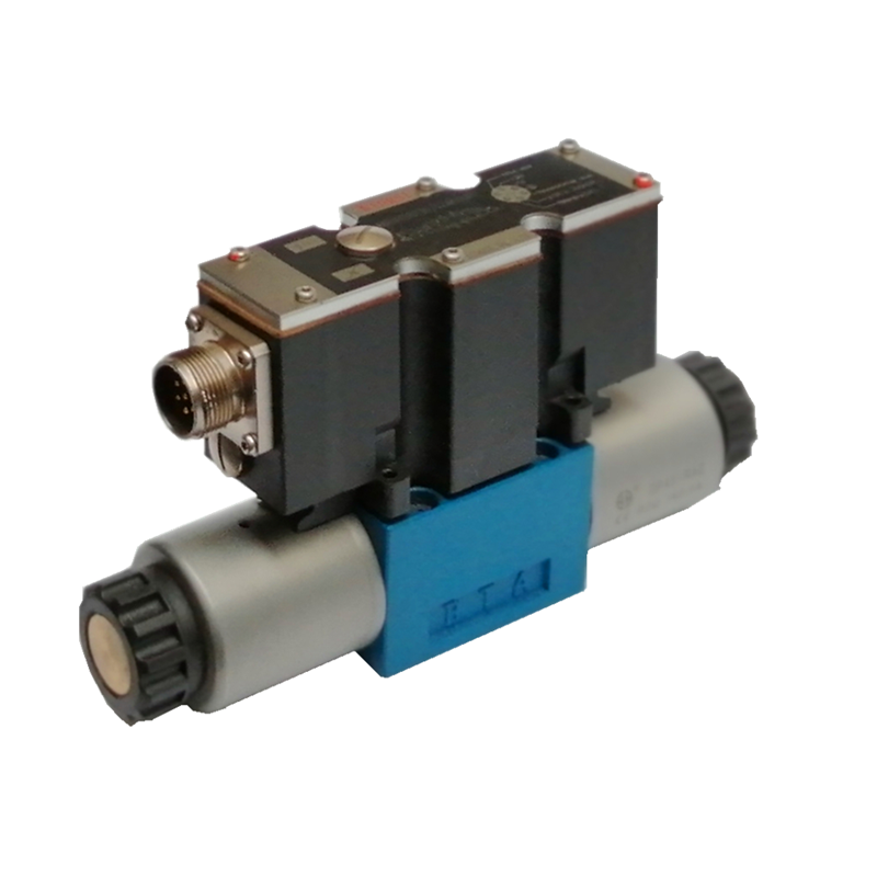 ● 帶直動式比例電磁鐵的比例換向閥。