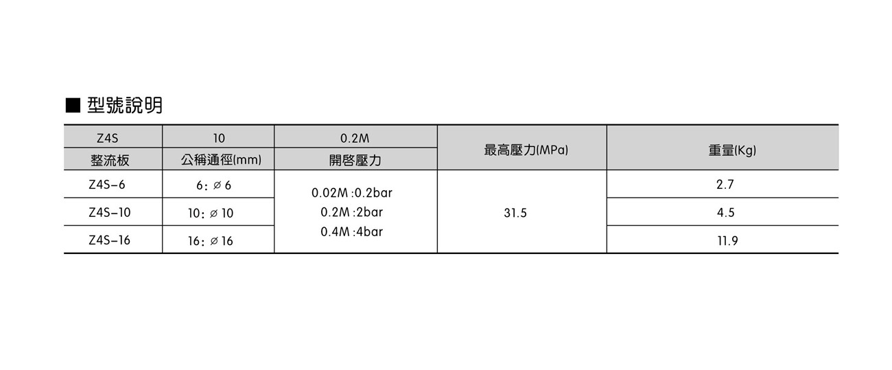● 開啟壓力:0.02/0.2/0.4MPa。