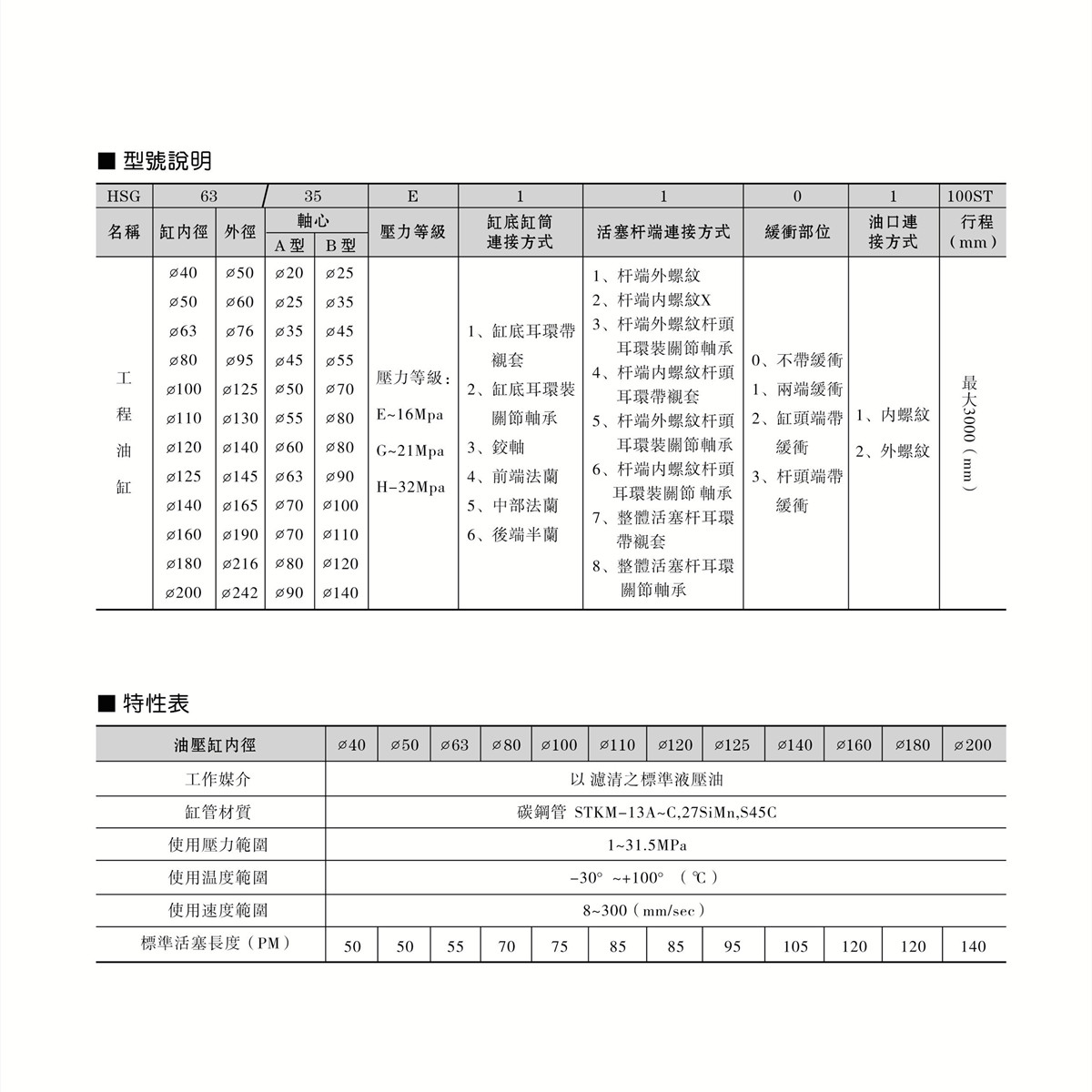 工程油壓缸 HSG
