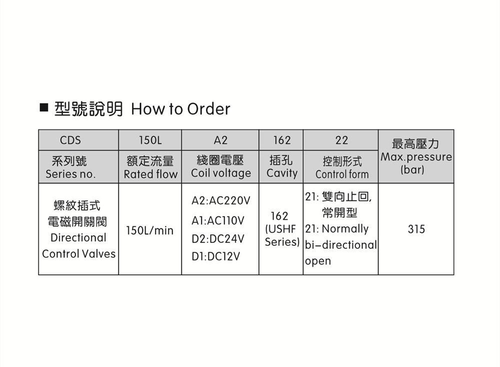 后 , 此閥截止油液雙向流動(dòng)。* 額定流量:150L/miin